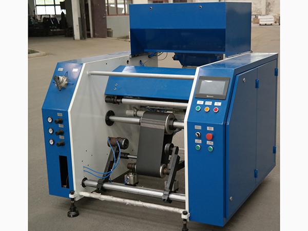 آلة تثقيب ولف استرتش فيلم أوتوماتيكية ذات 5 محاور طبقت لإعادة لف فيلم حفظ الأطعمة طازجة. ماكينة التثقيب واللف هذه إعيد تمصميها على ماكينة إعادة اللف الأوتوماتيكية ذات 5 محاور لديها وظيفة التثقيب. ماكينة التثقيب وإعادة اللف يمكنها تثقيب الفيلم أثناء إعادة اللف وكفائتها أعلى من ماكينة التثقيب ذات 3 محاور. مسافة خط التثقيب يمكن ضبطه في البرنامج. علاوة على ذلك، المنتج يمكن بسهولة تفكيكه وطريق التغليف الجديدة يمكنها تقليل التكلفة لأنك لا تحتاج قاطع مسنن أو قاطع تشقيق.