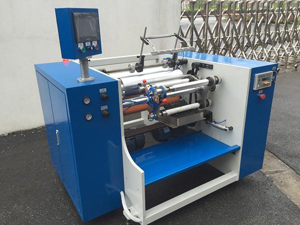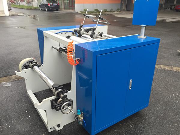ماكينة إعادة اللف تم إعادة تمصميها بمحورين لإعادة اللف ولديها كفاءة تشغيل أعلى نتيجة لإضافة محور أخر. هذه الآلة مناسبة جداً لورق الألمنيوم بطول حوالي أمتار قليلة. بثق الغراء والتقطيع يكون آلياً وبثق التحجيم يكون يدوياً. لذلك هذه المكينة يمكن إستخدامها بسهولة.
